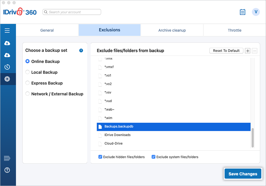 - Backup - View and select files and folders to back up to your IDrive® 360 account