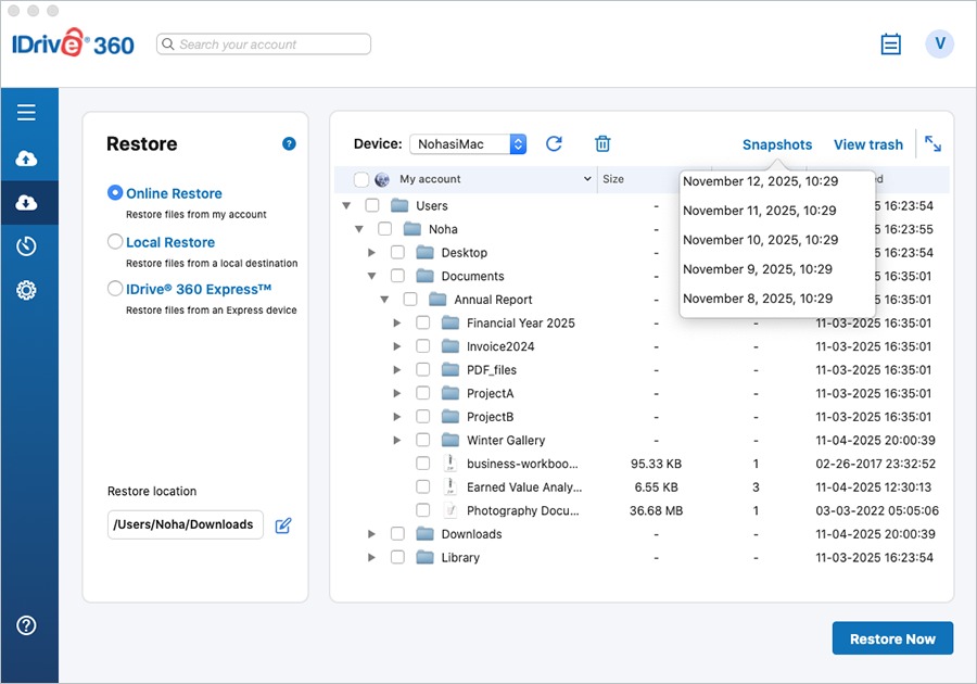- Can I search and restore a particular file from my IDrive® 360 account?