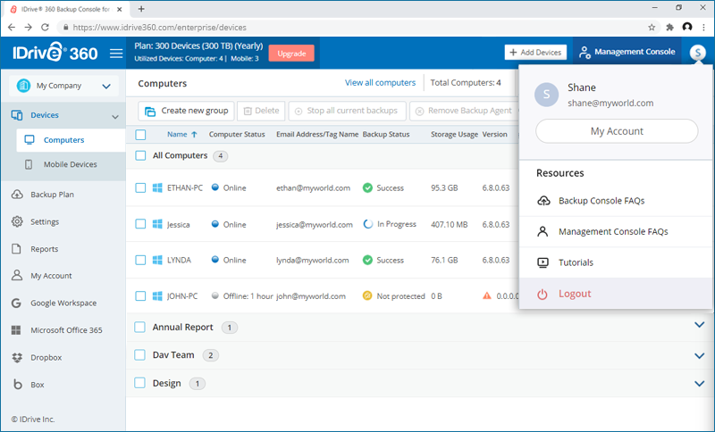 IDrive® 360 allows for scalability, as you grow your business, by avoiding the storage limitations. The platform can meet the increasing requirements of storage thus allowing users to customize the online storage plans.