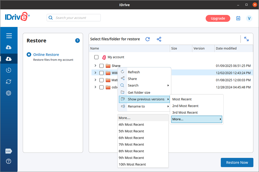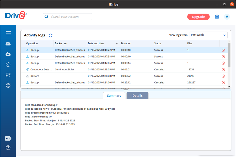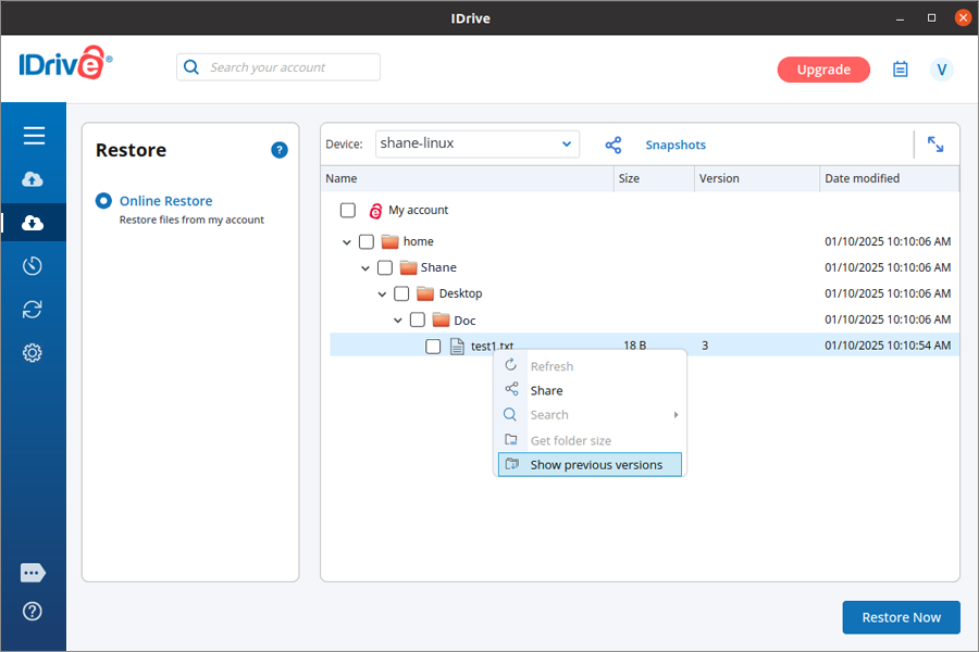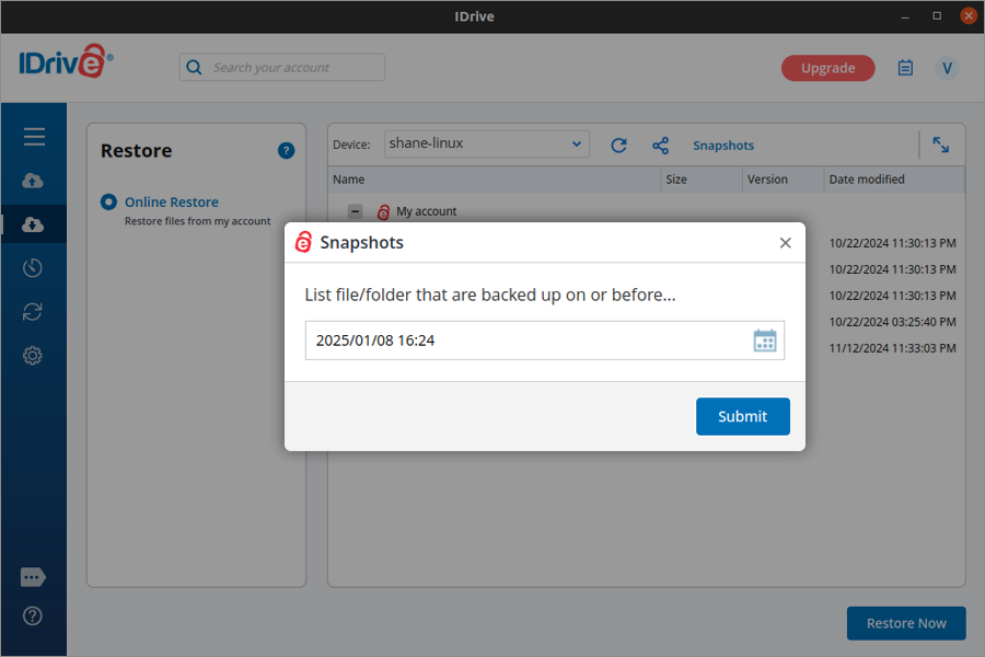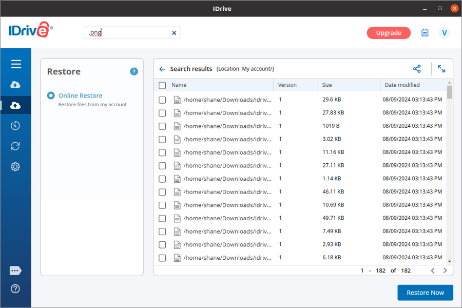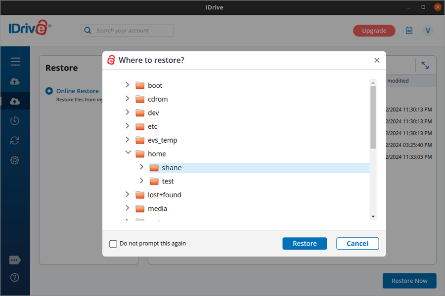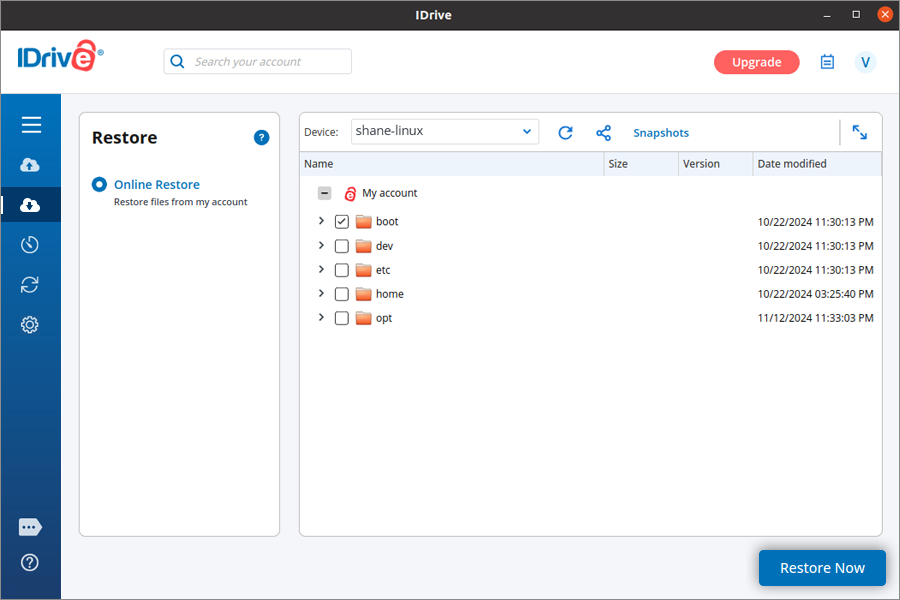Quick recovery of backed up data: Access and restore your backed up Linux data from IDrive cloud account using the desktop application, whenever needed.