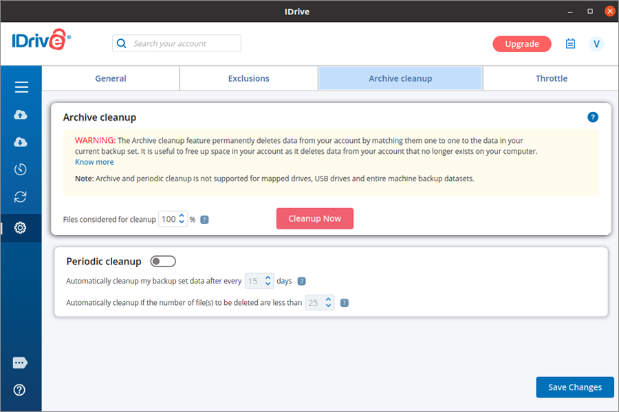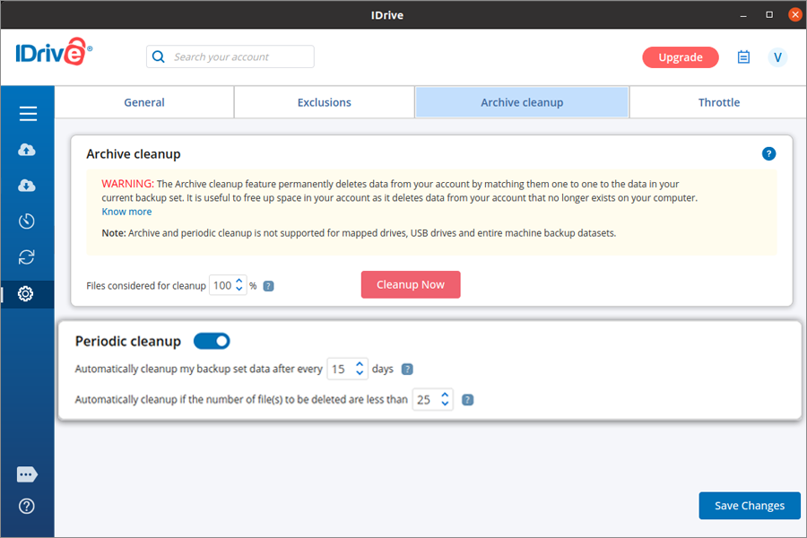 Periodic cleanup may result in the automatic deletion of data from your IDrive account; use/set this option carefully.
