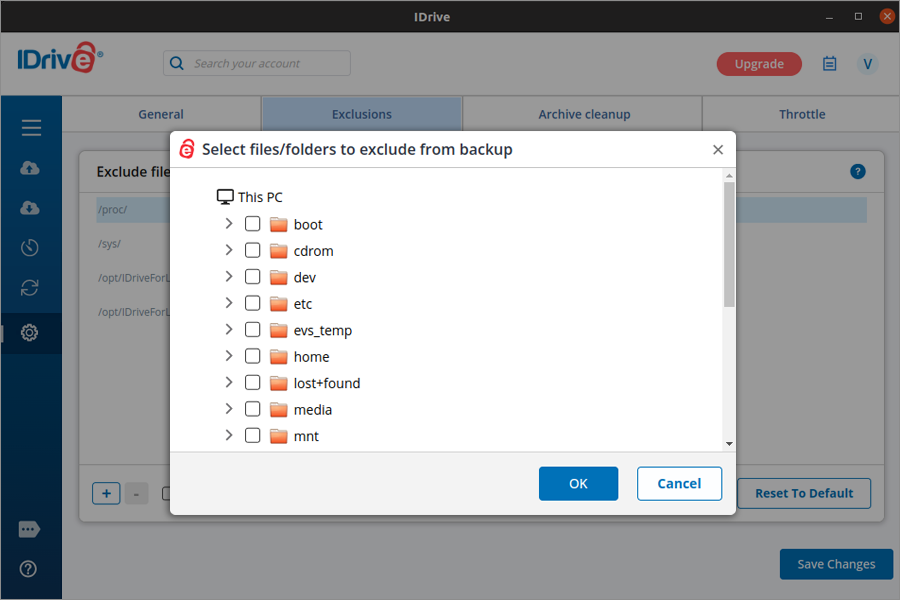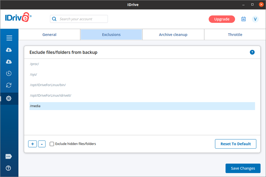 The Archive cleanup feature lets you permanently delete data from your account by matching the contents in your IDrive account with the data in the current backup set on your Linux computer. It is useful to free up space in your account as it deletes data from your account that no longer exists on your computer.