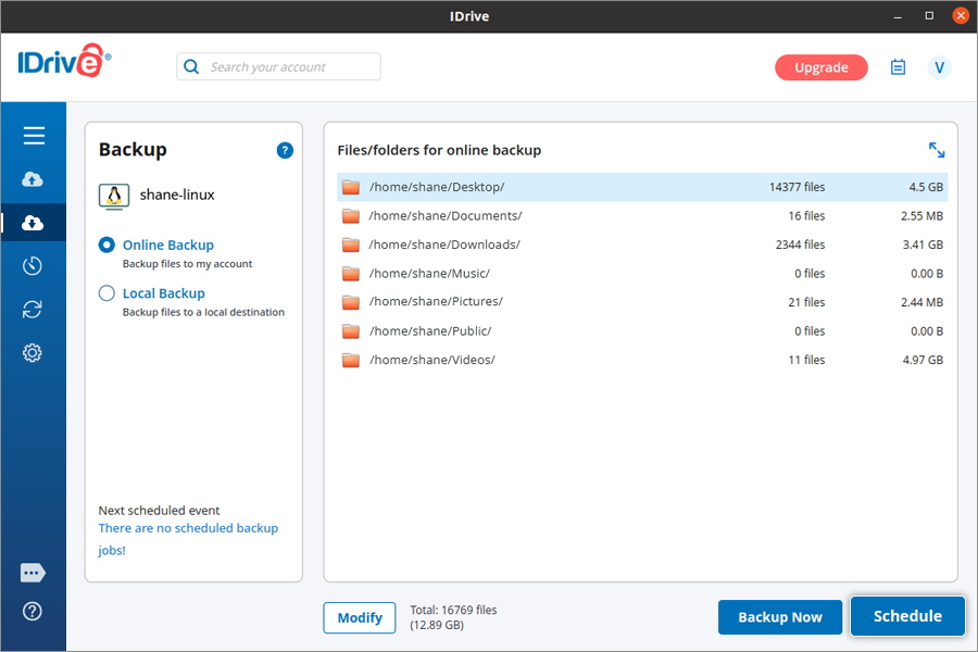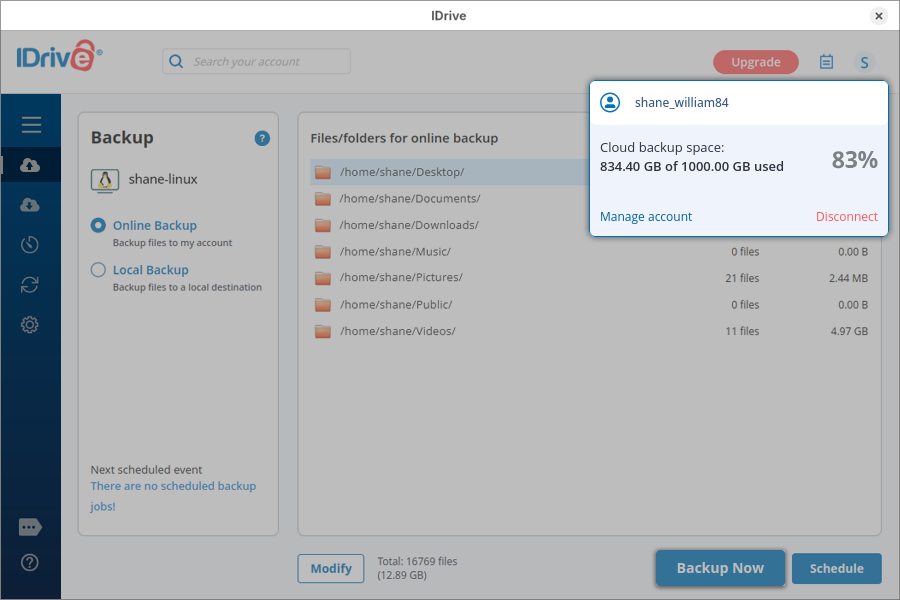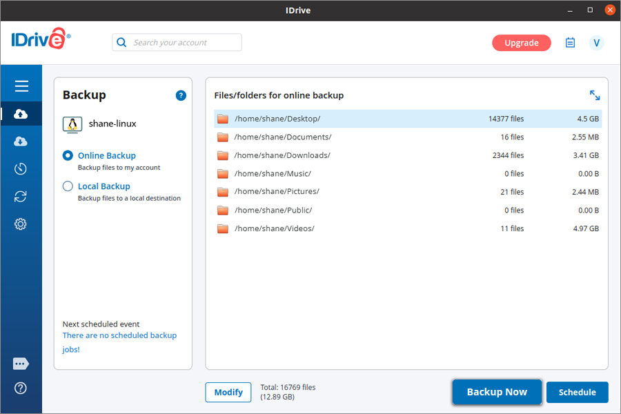 Backup multiple Linux machines: Using the desktop application, back up data from several Linux computers and store within a single IDrive account.
