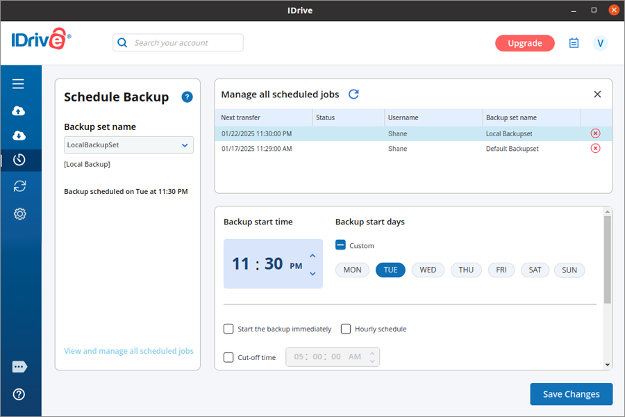 You can choose the start time for your backup. Select your preferred day(s) of backup in a week or schedule to run backups daily.