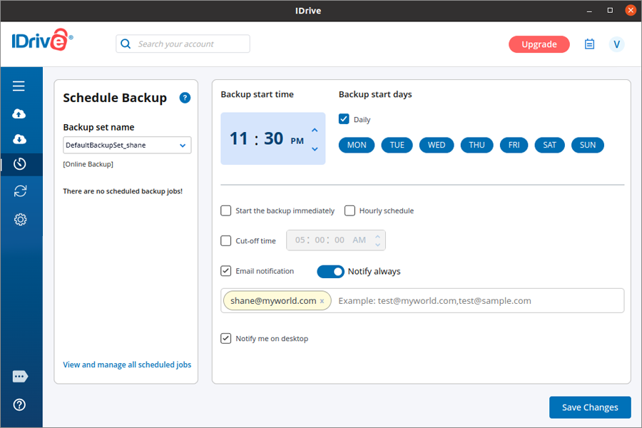 Notify me on desktop: Receive desktop notifications for your backup jobs.