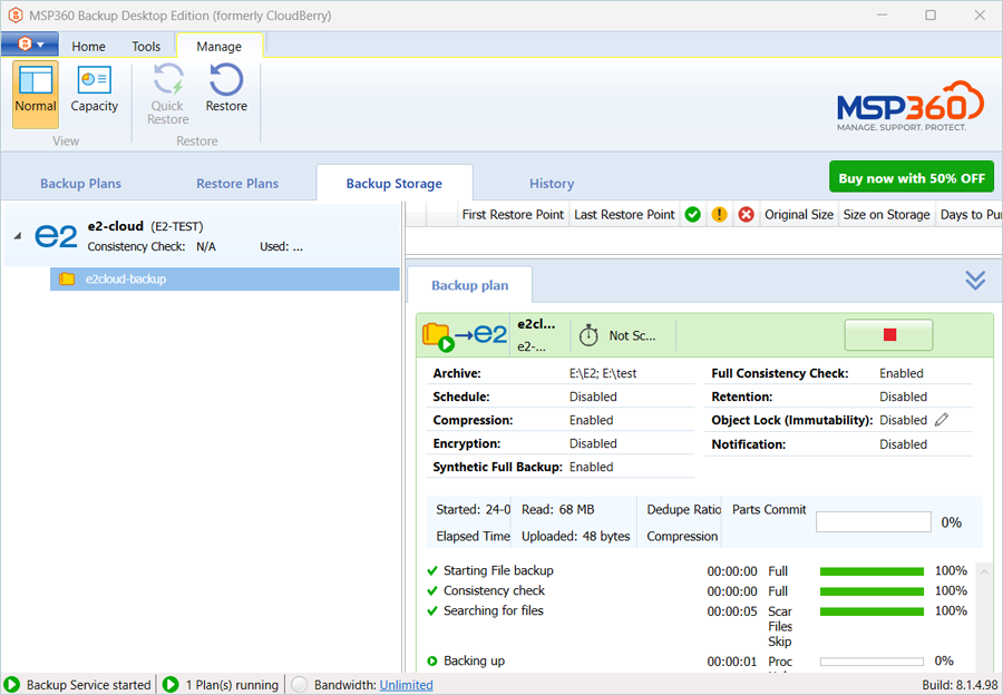 MSP360, formerly known as CloudBerry Lab, is a comprehensive backup and IT management platform for MSPs and IT teams, offering image and file-level backup, centralized management, ransomware protection, and remote access across diverse environments. It supports a bring-your-own-storage model with broad cloud integrations. Integrating MSP360 with IDrive® e2 extends these capabilities with a capable and scalable cloud object storage solution that facilitates systematic integration for secure and efficient data protection.