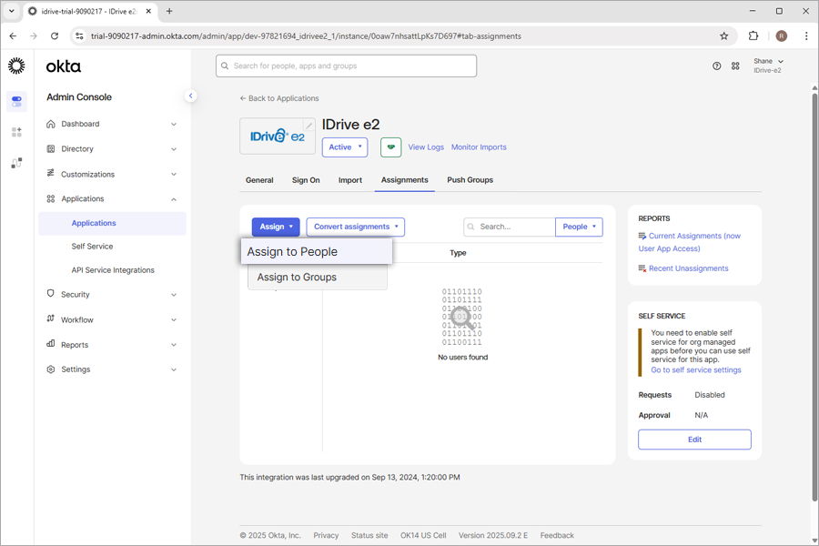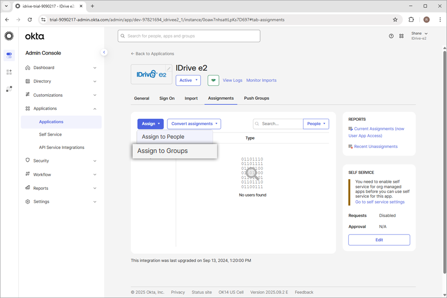 2. Go to the 'Assignments', click 'Assign', and select 'Assign to People' or 'Assign to Groups' to provision users or users in the group, respectively.